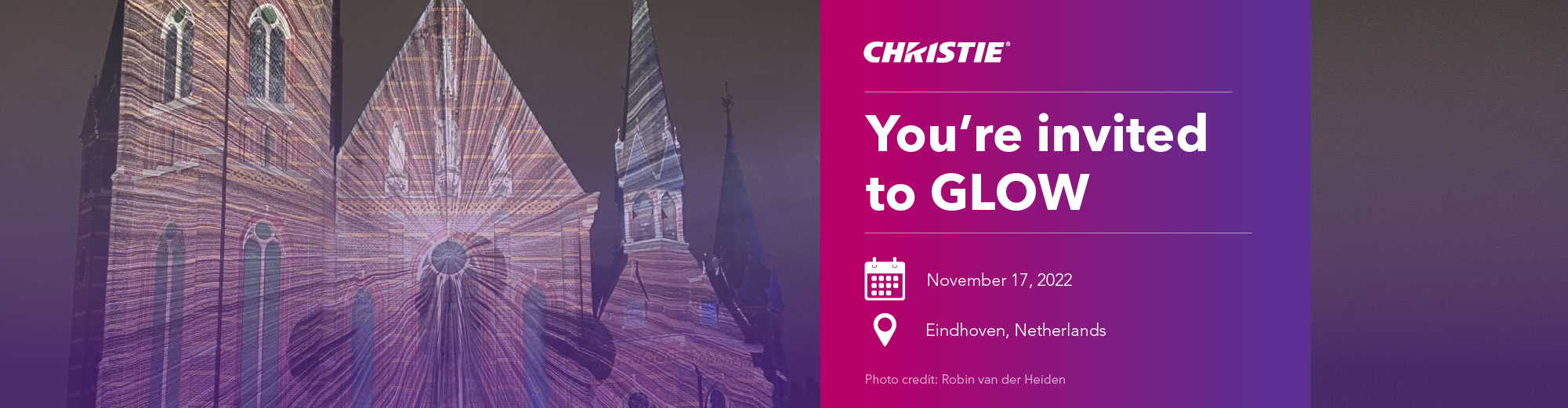 Join us on November 17 for our GLOW ′22 event, showcasing Christie® products and solutions as they transform Eindhoven buildings into works of art.