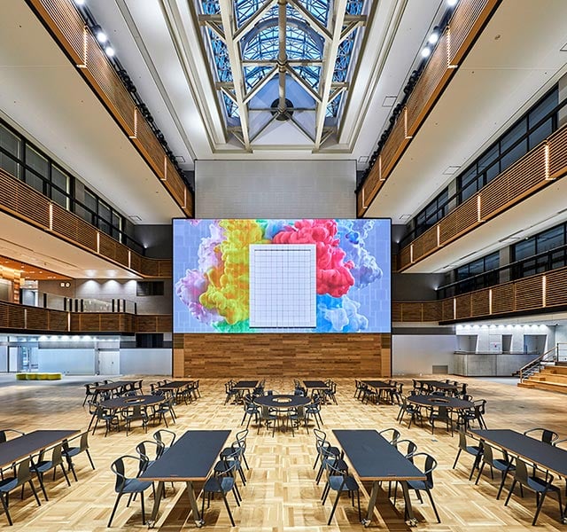 Big spaces require big performances. Use technology that produces big, bright images, visible even from the back row.