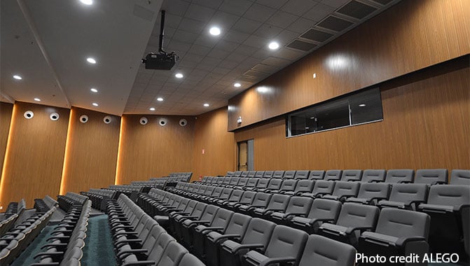 In the Carlos Vieira amphitheater, with a total area of 1,169 m² (12,583 square feet) and space for 692 seats, Seal Telecom installed a Christie 4K10-HS 1DLP® laser projector to show 4K UHD content for conferences and other events.