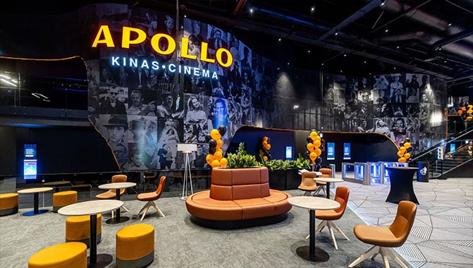 WOKINGHAM, England – (November 16, 2023) – Christie® RGB pure laser projection and Vive Audio™ technology deliver powerful cinematic experiences at Apollo Kinas, a new premium multiplex at Vilnius Outlet shopping centre, Lithuania. Christie partner BMK installed a Christie CP4425-RGB and five CP2415-RGB projectors with Real|Laser™ illumination technology, each accompanied by a Christie Vive Audio sound system, to immerse audiences in its six screens.