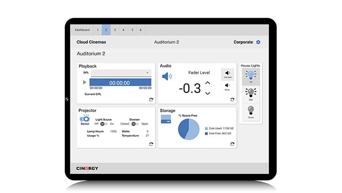 Command Station is launching at CineEurope as a new application to Cinergy, an advanced remote monitoring and management software platform for both Christie and non-Christie equipment. Cinergy provides exhibitors and service providers with robust tools to monitor system health and track assets, automate key delivery, and drive informed decision-making with comprehensive reporting. The new Command Station application allows theatre managers to perform booth operations and control equipment from anywhere in their theatre. Subscribers can start and stop playlists, adjust lighting, audio, and more – quickly and effortlessly, all from a tablet.