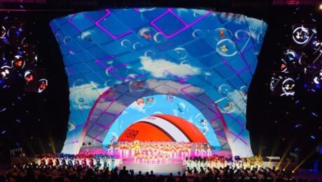 Held at the National Aquatics Center (Water Cube) on August 30, the event captivated audiences with a rousing cultural performance themed “Fantasia of Dreams”, which comprised live performers, lighting and projection effects on a meticulously designed stage featuring a huge “meshed basket” that consisted of an inner and outer structure. The entire show was delivered using seven Pandoras Box Dual servers, two Pandoras Box Quad servers, three Pandoras Box Quad players, and two Pandoras Box Managers provided by Christie’s Chinese partner, PDR China.