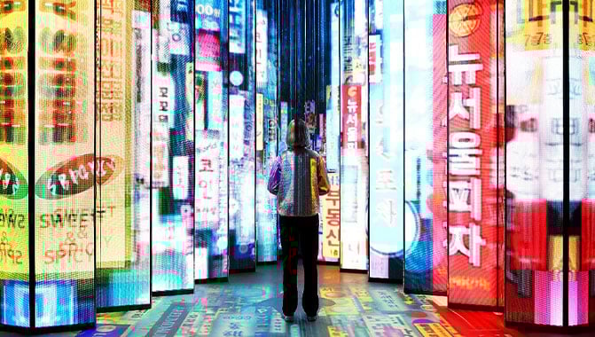 Vivid projections using 10 Christie D20WU-HS laser projectors at the exhibition zone titled “The Story in Seoul”