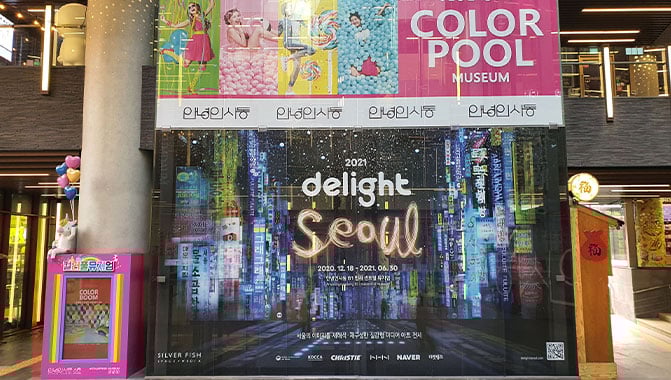 Titled 2021 Delight Seoul, the exhibition is organized by media production firm Design Silverfish, which has been working closely with Christie since the 2012 Yeosu Expo. It is currently held at Insa Central Museum until June 30, and comprises 11 exhibition zones featuring the works of Seoul-based artists from various fields. Each zone showcases various aspects of culture and daily life in the city through the use of technologies such as digital projections, virtual reality, augmented reality, and holograms.