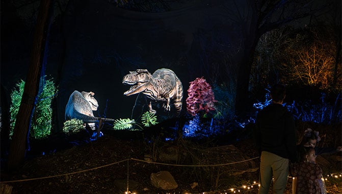 DALLAS – Christie® is honored that content creator Phillipe Bergeron, president and CEO of PaintScaping, a global leader in 3D projection mapping, chose Christie 3DLP 30,000 lumen 4K resolution projectors to projection map the world premiere of “Dino Lumina: A Jurassic Adventure,” at the Dallas Zoo, the oldest and largest zoo in Texas. This is the first time scrim technology has been used to deliver an immersive experience to display dinosaurs from the Mesozoic “Jurassic” Era. Since its opening on November 22, more than 65,000 wide-eyed spectators have enjoyed the exhibit, which runs until January 4.