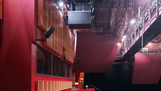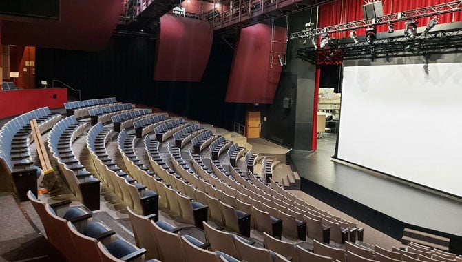 The upgrade to Muir Theatre was completed in two phases and began in 2016 with lighting, video distribution and projection. Working with Scott Miller, Ryley Pynn and George Davidson of DWD Theatre Design and Sapphire Sound, the first phase included the installation of a Christie Crimson 3DLP laser projector for rear projection on the stage, which is used for conferences and events that require a smaller screen. The second phase, which began in 2019, saw the installation of a Christie D4K40-RGB pure laser projector.