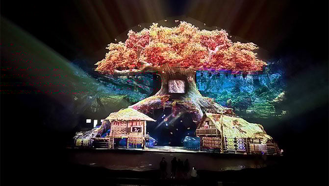 Housed in weatherproof enclosures overlooking the stage areas, the projectors deliver vibrant images at several performance venues that are interconnected via plank roads, including the massive Hibiscus tree and enchanted forest. “These sites represent the harmonious coexistence of nature and life depicted in ancient poetry, and they are vividly brought to life using a variety of advanced technologies including 3D projections, lighting, holography and water effects to create a stunning multisensorial experience that accentuates the timeless beauty of the Jiuge-Shangui scenic area,” Li added.