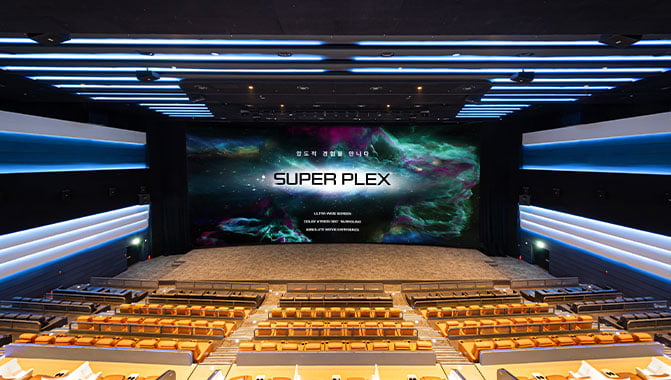 The newly refurbished Superplex World Tower auditorium is located in Lotte World Tower, the tallest building in South Korea. With its large screen at 34 meters wide, it's lit by dual Christie CP4450-RGB pure laser projectors that deliver a combined brightness of up to 110,000 lumens for a spectacular large-screen experience. Visuals from the two projectors have been perfectly aligned to display a completely seamless image using Christie® Mystique™ Cinema, an auto-calibrating image alignment software and camera kit that simplifies the calibration process for dual-projection setups.