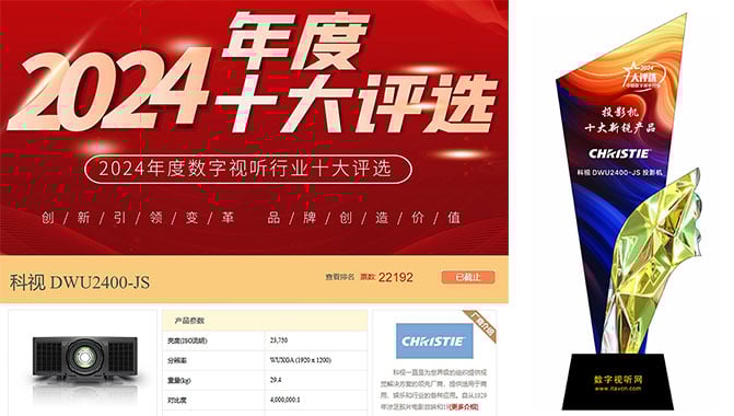 Christie also received outstanding recognition at ITAVCN’s “Top 10 Digital Audiovisual Industry Awards.” The new Jazz Series DWU2400-JS 1DLP laser projector, featuring advanced electronics and stunning visuals, was named one of the “Top 10 New Projectors of the Year.” This accolade highlights Christie’s excellence in innovation, performance, and adaptability to market needs.
