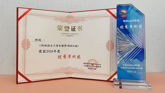 In collaboration with its partner Beijing Zhongqing Display Technology, Christie contributed to the success of the “Unique Dream of Red Mansions” theatrical park in Langfang, Hebei Province. This project was recognized by local trade publication PJ Time with the “2024 Excellent Case Study Award,” showcasing Christie’s remarkable capabilities in large-scale cultural tourism applications.