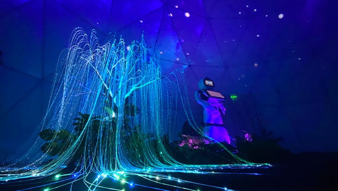 HO CHI MINH CITY – Los proyectores láser 1DLP® de la Serie HS de Christie® dieron vida al planeta ficticio de Nebula, cautivando al público con visuales inmersivos en un domo instalado dentro del Dam Sen Cultural Park, un conocido parque de atracciones de Saigón (Vietnam).