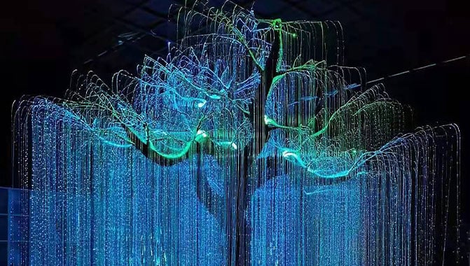 "El show cuenta la historia de los cuatro elementos (aire, tierra, agua y fuego)que se entretejen a la perfección utilizando diversas tecnologías para crear un espectáculo cautivador que presenta un universo idílico, planetas y los árboles del alma y la vida que lo unen todo”, afirma Tai Hoang, cofundador y CEO de Alta Media. “Entre los aspectos más destacados de este espectáculo estaban las proyecciones realizadas por los Christie D20WU-HS instalados en lados opuestos del domo. Cada proyector estaba equipado con una lente gran angular Navitar y pudimos llenar el domo de imágenes espectaculares colocando los proyector es a unos 1,8 metros del suelo.”