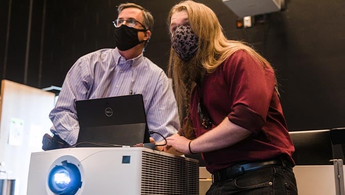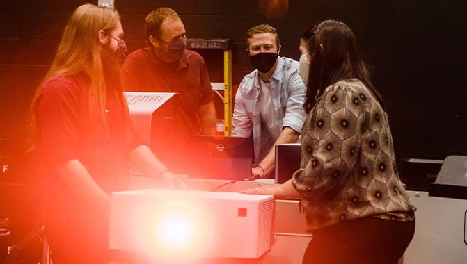 To help students gain the practical knowledge and experience required to work in this field, Christie is partnering with the university to provide students with leading technology found in entertainment venues around the world, including 1DLP® projectors, Christie Pandoras Box™ compact players, and Widget Designer, for customized show control. Additionally, Christie technical product specialists are providing students with in-person and virtual training, as well as support with the year-end 3D projection mapping project.