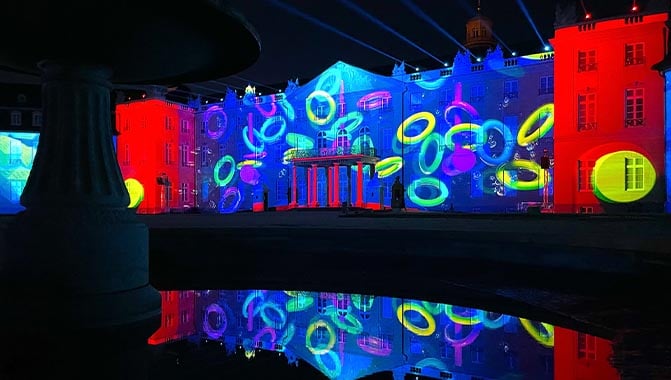 Christie® Pandoras Box® Software Version 8.8 technology is powering the impressive projection mapping at Schlosslichtspiele Festival at Karlsruhe Palace, Germany. Technical team AV Active GmbH has deployed two Pandoras Box licenses two Christie Widget Designers and 24 Pandoras Box outputs to power projection mapping onto the 172m x17m (564 feet x 56 feet) façade of Karlsruhe Palace.