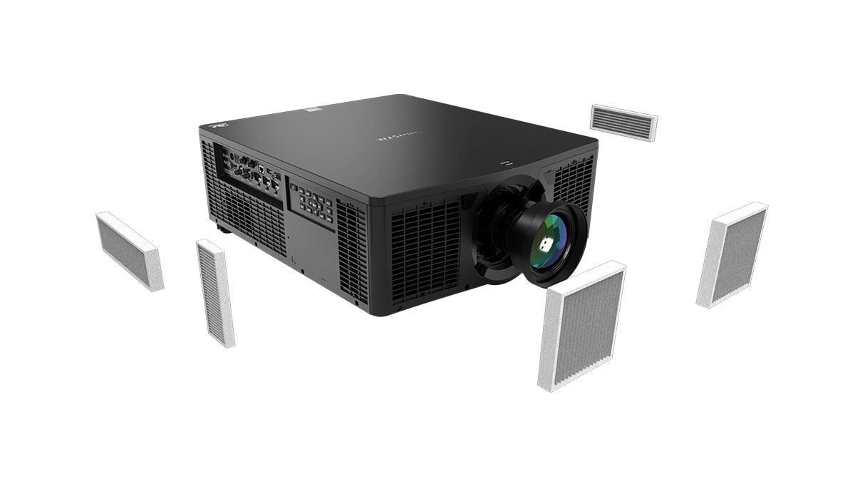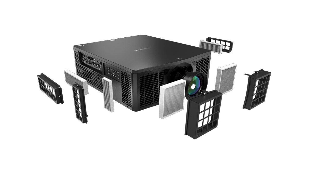 While Christie® Jazz Series projectors are designed to run filter-free, certain environments may call for added protection. If your projector is exposed to more than typical indoor dust, dirt, or sand, we recommend using a coarse dust filter to keep it performing at its best.
