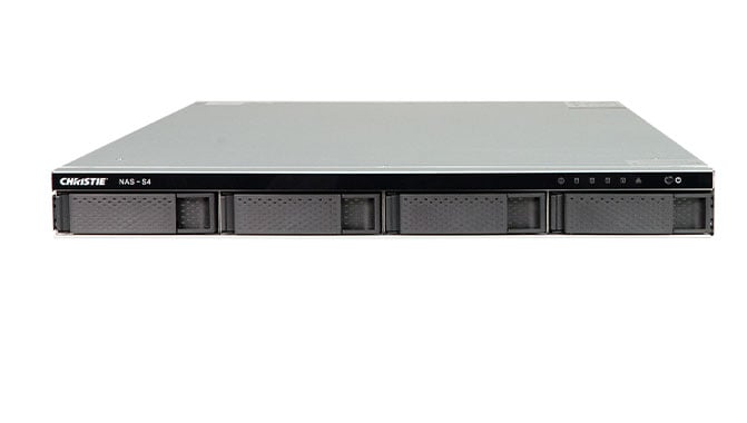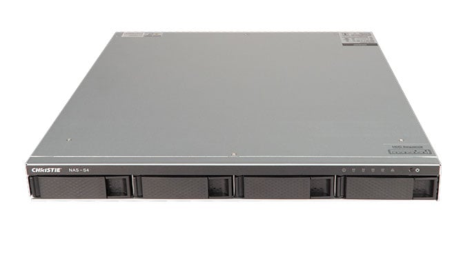 The Christie NAS-S4 provides a dedicated, enterprise-grade storage solution in a slim (1RU) rack mountable enclosure. It is compatible with the IMB-S3 and IMB-S4.