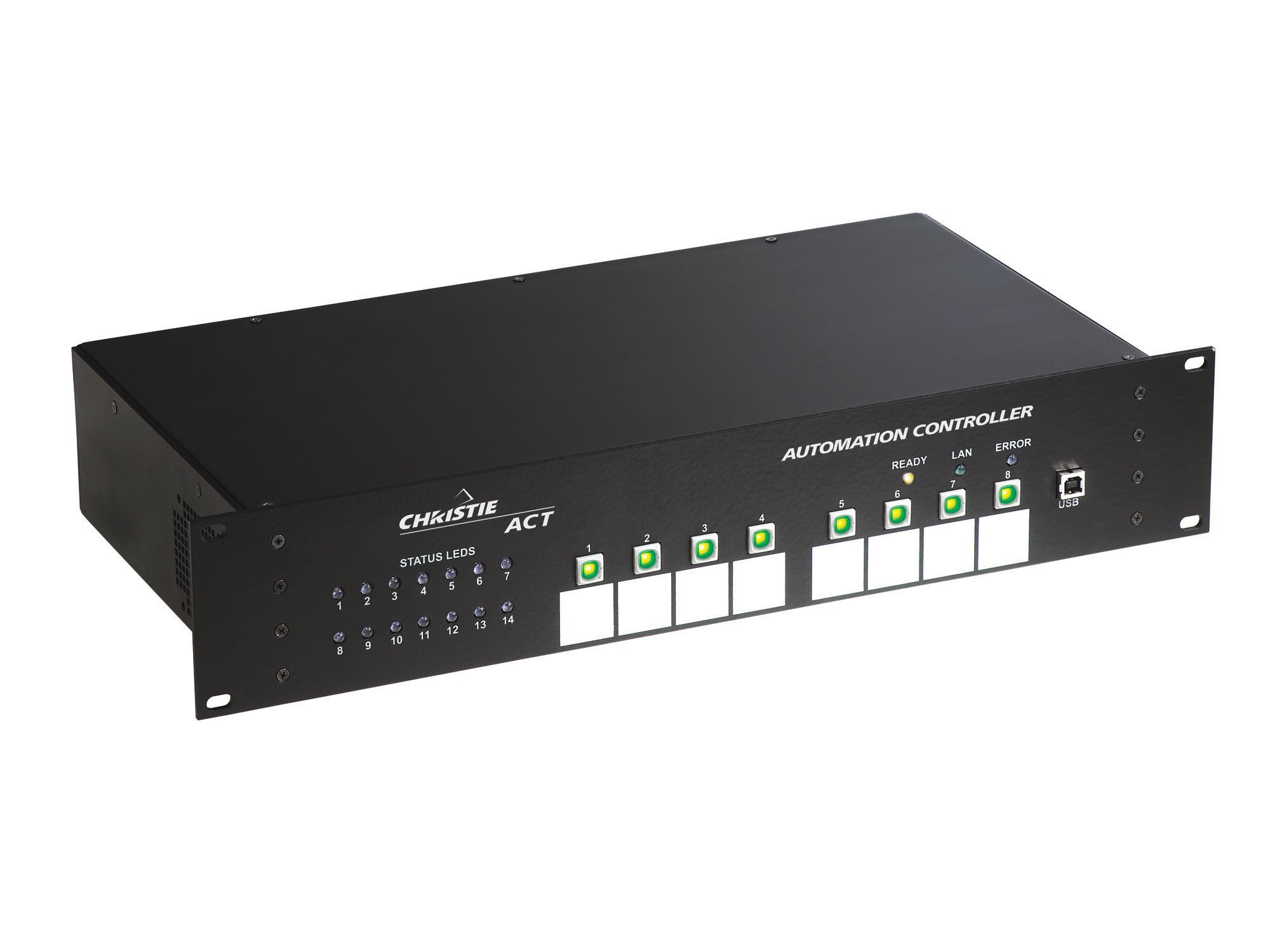 The Christie ACT is a 2RU steel box with general purpose I/O, RS-232, RS-422 and ethernet connections on the back and user defined status LED’s on the front. The main user interface utilized for set-up and operation can be accessed from any external computer’s web browser.