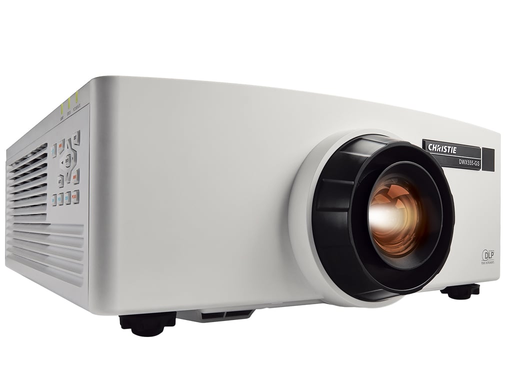 Featuring laser phosphor illumination, the Christie DWX555-GS 1DLP® projector eliminates the need for lamp and filter replacements, providing 20,000 hours of low-cost operation. With its small footprint, low-weight, quiet operation and a full suite of lenses, the Christie DWX555-GS is ideal for boardrooms, higher education, houses of worship and smaller location-based entertainment venues.