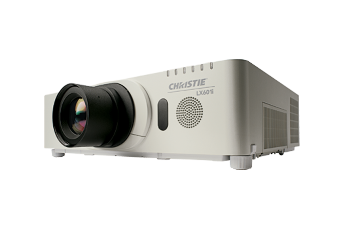 The Christie LX601i provides professional-quality presentations at an affordable price. This feature-rich, XGA resolution projector offers 6000 ANSI lumens at 3000:1 contrast ratio for bold, detailed images. The optional lens suite includes a selection of zoom lenses with repeatable position recall capabilities that make the Christie LX601i ideal for small-to-medium sized applications and multiple screens.