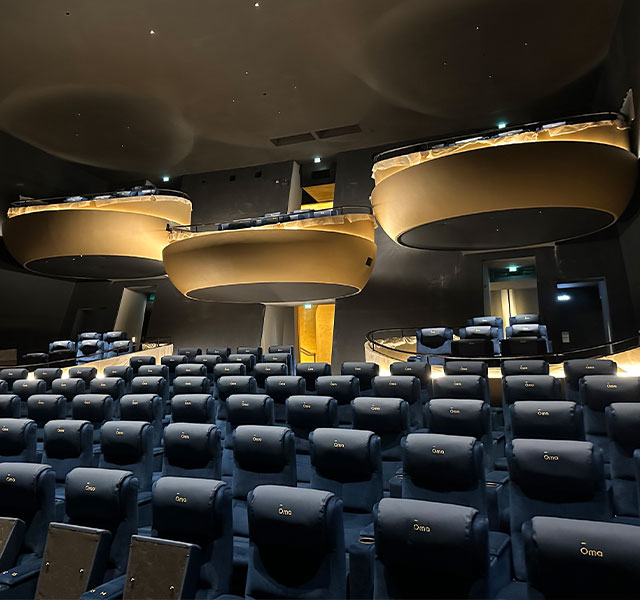 A CP4435-RGB pure laser projector was chosen for the Ōma Cinema, bringing vibrant colors and detailed true-to-life images to the screen. Ōma Cinema’s innovative architecture, alongside Christie’s advanced cinema projection, brings a cinema experience like no other.