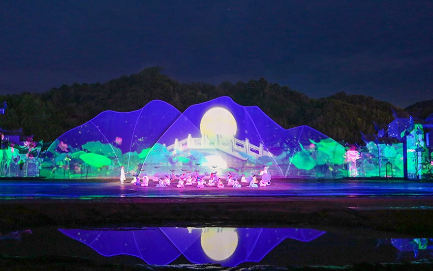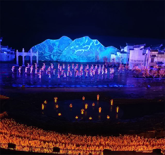 Our final destination leads us to Jiangxi province in China, where a large-scale, real-life scenery performance titled “Dreaming in Hometown” celebrates traditional Huizhou culture and includes over 200 live performers, elaborate stage design, state-of-the-art projection, and audio effects to create a world-first experience that highlights ancient poetry and the history of the Huizhou people.